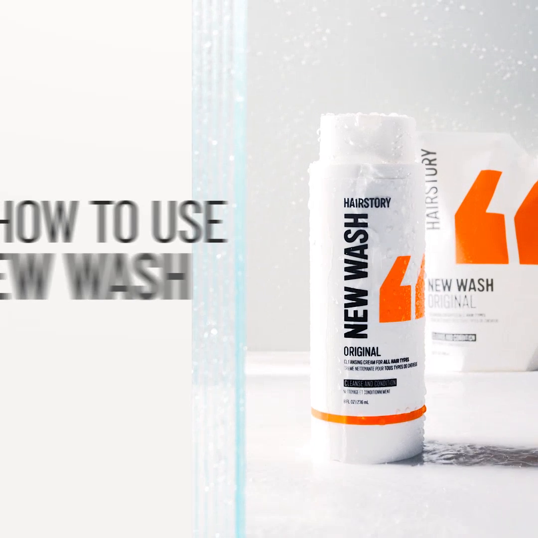 Hoe gebruik je het STAP 1: AANBRENGEN Breng een royale hoeveelheid New Wash aan op nat haar, van de hoofdhuid tot de punten.